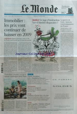 ![MONDE [No 19891] du 07/01/2009 - IMMOBILIER - LES PRIX VONT CONTINUER DE BAISSER EN 2009 JUSTICE - LE JUGE D'INSTRUCTION VA-T-IL BIENTOT DISPARAITRE - LA GUERRE DE GAZA - TENSIONS COMMUNAUTAIRES EN FRANCE - N. SARKOZY ET LES EUROPEENS ECHOUENT A OBTENIR UN CESSEZ-LE-FEU L'INDOCHINE COLONIALE VUE PAR LE CINEASTE CAMBBODGIEN RITHY PANH - ISABELLE HUPPERT PATRICK DEVEDJIAN ET LE MANHATTAN FRANCAIS ENVIRONNEMENT - SAUVER LA MANGROVE AU SENEGAL EUROPE - LONDRES ET BERLIN FAC francais MONDE [No 19891] du 07/01/2009 - IMMOBILIER - LES PRIX VONT CONTINUER DE BAISSER EN 2009 JUSTICE - LE JUGE D'INSTRUCTION VA-T-IL BIENTOT DISPARAITRE - LA GUERRE DE GAZA - TENSIONS COMMUNAUTAIRES EN FRANCE - N. SARKOZY ET LES EUROPEENS ECHOUENT A OBTENIR UN CESSEZ-LE-FEU L'INDOCHINE COLONIALE VUE PAR LE CINEASTE CAMBBODGIEN RITHY PANH - ISABELLE HUPPERT PATRICK DEVEDJIAN ET LE MANHATTAN FRANCAIS ENVIRONNEMENT - SAUVER LA MANGROVE AU SENEGAL EUROPE - LONDRES ET BERLIN FAC francais](https://images-eu.ssl-images-amazon.com/images/I/51m96OJbHpL.jpg)